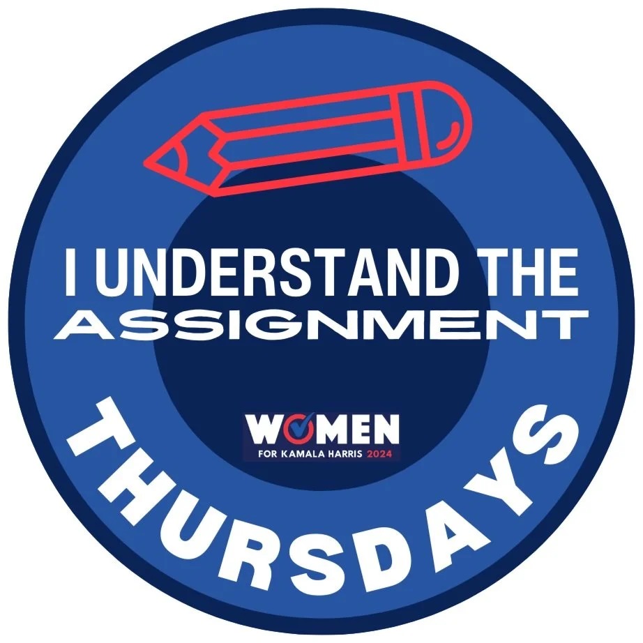 On ‘I Understand the Assignment Thursdays’, our newsletter comes out with key actions for the coming weekend. Use #IUnderstandTheAssignment and tag Women for Harris-Walz on social to show us what you are doing each weekend of action.